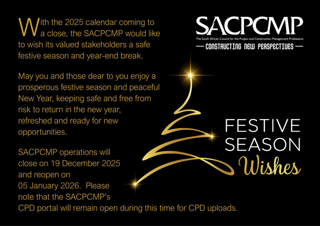 The South African Council for the Project and Construction Management Professions (SACPCMP) is empowered by Section 18 (1)(c) of the Act, 2000. (Act No.48 of 2000) to regulate the Project and Construction Management Professions.