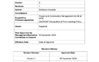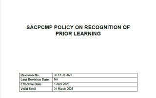 SACPCMP POLICY FOR THE RECOGNITION OF PRIOR LEARNING The South African Council for the Project and Construction Management Professions (SACPCMP) is established through the Project and Construction Management Professions Act [...]